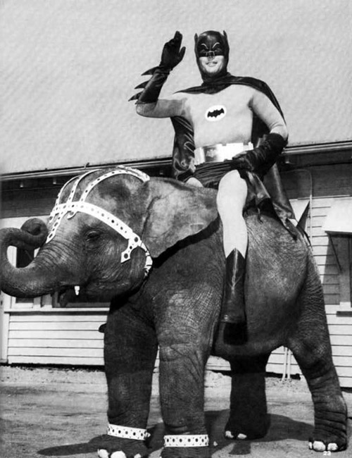 It’s Monday, so here’s Batman riding an elephant Kerry Faler Uncategorized August 20, 2013 1 Minute Share this: Click to share on X (Opens in new window) X Click to share on Facebook (Opens in new window) Facebook Like Loading... Published by Kerry Faler I collect typewriters in the 21st century. I’m an enigma that way. View all posts by Kerry Faler Published August 20, 2013