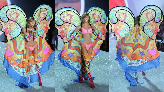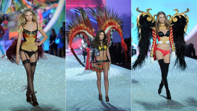 Once again, Victoria’s Secret made a statement to the world about fashion. That statement is a secret, however, and we have a feeling it may be “don’t tell anybody, but I thought this was a Project Runway challenge where we had to make lingerie from elements from a party store, pet shop, and Everything’s $1.”