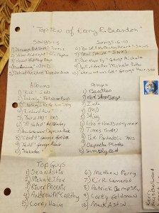 One of my best middle school friends sent this photo of a letter of all my favorites from 1988 and it made me laugh so much that I had to post it. Lori, thanks for making me laugh this week.