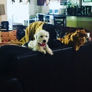 She likes to hang out with Fitz (F. Catz Fitzgerald) whether he wants her to or not. Ellie is half Westie, half dachshund. That makes for a weird dog.