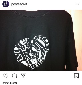 This is from Post Secret’s Instagram. I can’t find the shirt for sale online, but I love it.