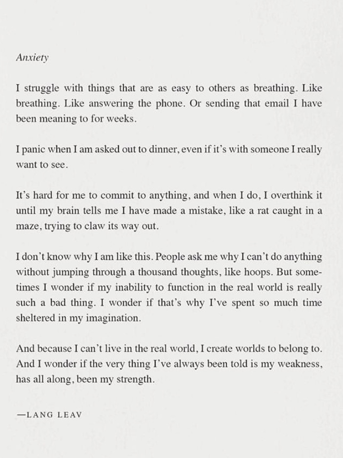 2.84/365: I could have written this Kerry Faler Uncategorized March 26, 2019March 28, 2019 1 Minute I could have written exactly this by Lang Leav. Exactly this. Share this: Share on X (Opens in new window) X Share on Facebook (Opens in new window) Facebook Like Loading... Published by Kerry Faler I collect typewriters in the 21st century. I’m an enigma that way. View all posts by Kerry Faler Published March 26, 2019March 28, 2019