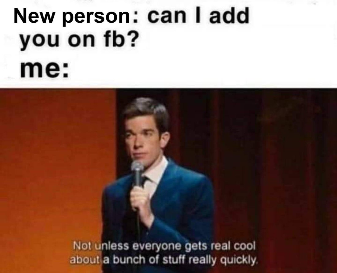 This is how I feel every time I meet a new person because I don’t want to share all my weirdness with my realtor or a random mom from my kid’s baseball team. Yes, that sounds ugly, but it’s me. I like to think that my Facebook is a reflection of myself, like this blog, but Facebook is the everyday day-in-the-life where I don’t censor much.