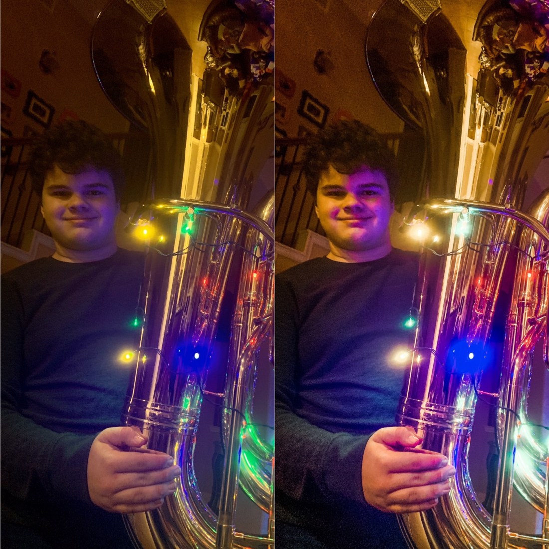 All of the photos I’ve taken of Andrew with his tuba are dark. No matter what. So, I tried one from before he left for a Christmas concert.