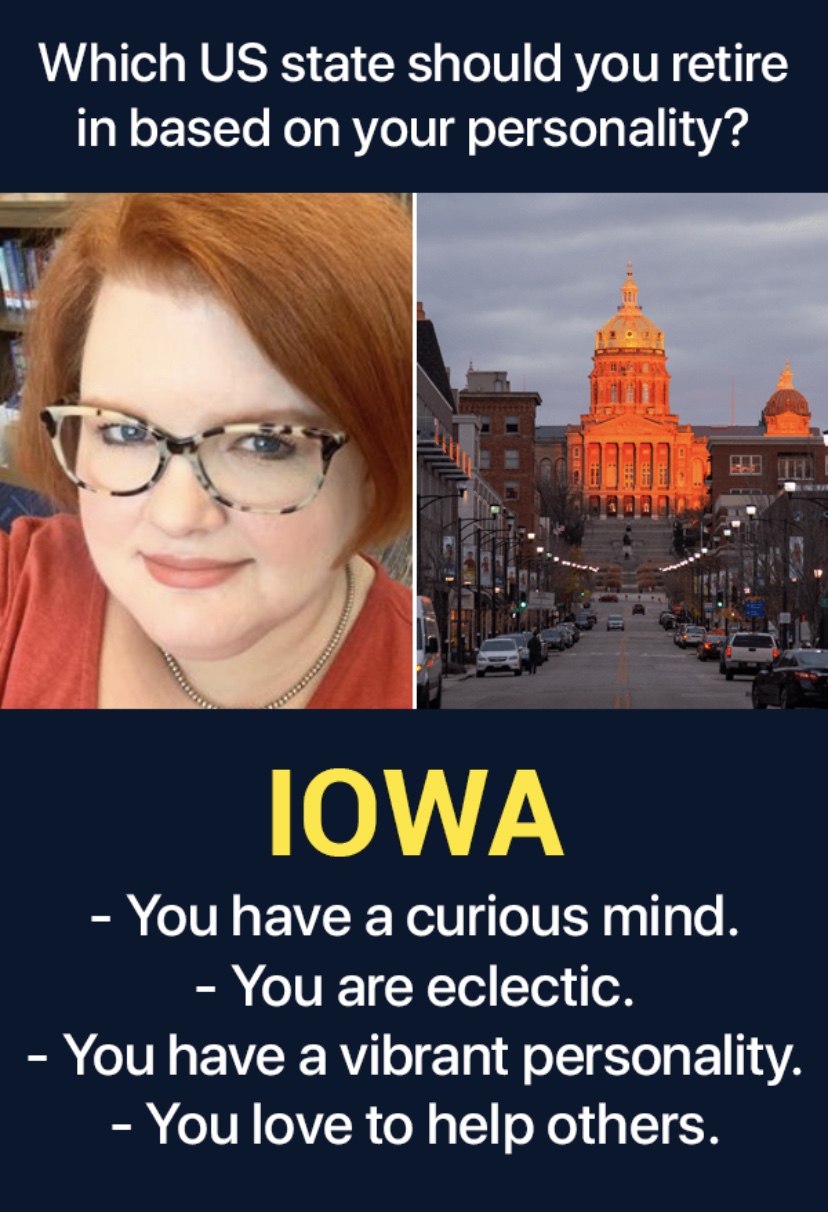 Eyewear model? Lipstick model?They nailed this one.Who knew Iowa had this much going on?By hottest, if you mean ”best in which you smell with.”One of these is physically impossible, another was locked down 1997, but I could always move, so — not a complete disaster answer.