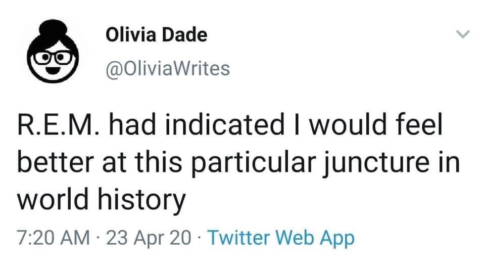 3.115/366: and I feel meh Kerry Faler Uncategorized April 25, 2020 1 Minute R.E.M. Never let me down (excluding much of the post-Bill Berry era). Share this: Share on X (Opens in new window) X Share on Facebook (Opens in new window) Facebook Like Loading... Published by Kerry Faler I collect typewriters in the 21st century. I’m an enigma that way. View all posts by Kerry Faler Published April 25, 2020