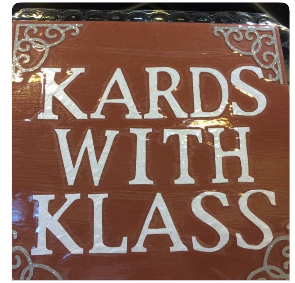 Saw this on the Facebooks machine and it hurt my brain and my feelings. It’s not like they’re trying to match the Ks for a reason. Those words already start with C! This a big pet peeve of mine. If I had a used car lot, I would not call it Krazy Kerry’s Used Kars.
