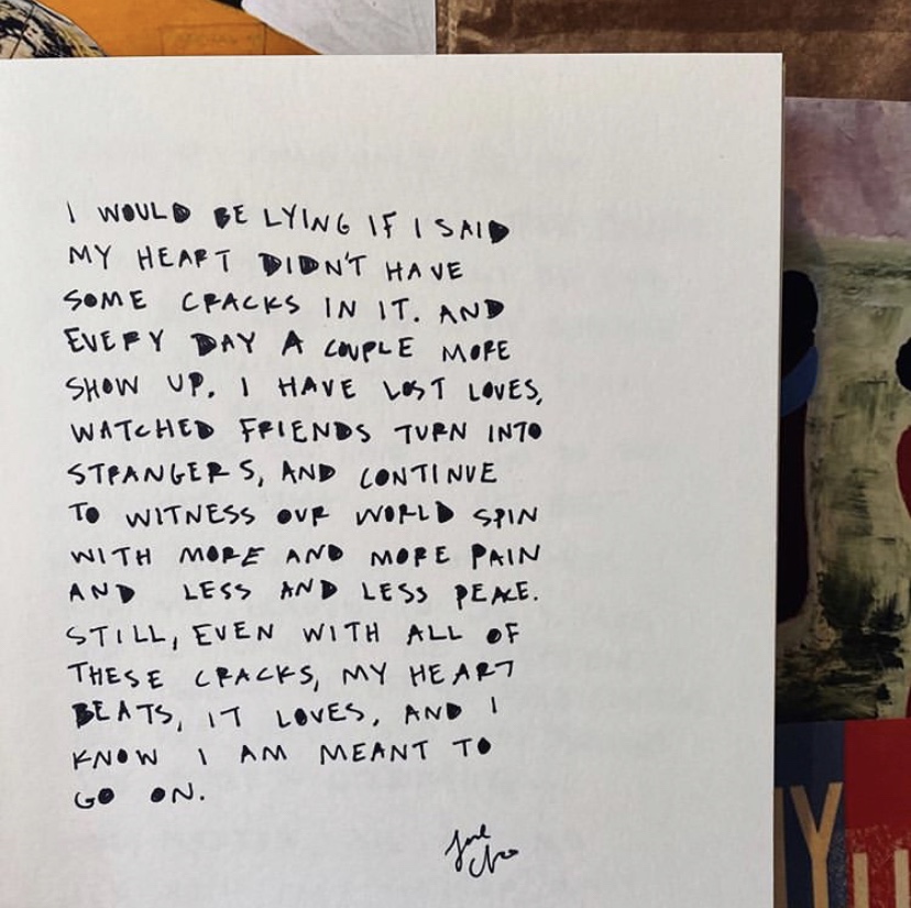 3.197/366: meant to go on Kerry Faler Uncategorized July 15, 2020July 15, 2020 1 Minute I feel every line of this. From the great Cleo Wade: Share this: Share on X (Opens in new window) X Share on Facebook (Opens in new window) Facebook Like Loading... Published by Kerry Faler I collect typewriters in the 21st century. I’m an enigma that way. View all posts by Kerry Faler Published July 15, 2020July 15, 2020