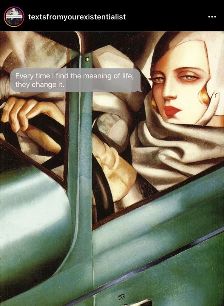 3.217/366: text from your existentialist no. 17 Kerry Faler Uncategorized August 4, 2020 1 Minute This is the God’s honest truth. Share this: Share on X (Opens in new window) X Share on Facebook (Opens in new window) Facebook Like Loading... Published by Kerry Faler I collect typewriters in the 21st century. I’m an enigma that way. View all posts by Kerry Faler Published August 4, 2020