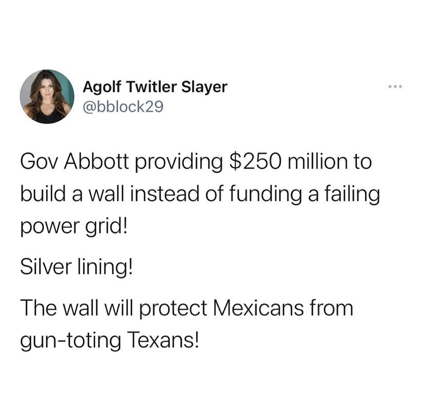 It means Abbott and his cronies care more about Trump’s failed ideas and policies than it does about Texans. We have a worthless power grid that killed 200 people and they’re asking us to put out thermostats on 82° in the summer, but let’s build a wall to keep families from other countries out. Most of the people coming across the border are families that pose no threat to Americans. Abbott’s latest solution is to move prisoners to other prisons in order to house refugees. Real prisons. Is there a problem? Yes. Is a wall the solution? No. We’ve seen how easily can scale the wall — and literally throw children over it. There isn’t enough security personnel and there aren’t easy answers about what to do policy-wise about the issue of amnesty. But what will $250 million dollars do? Virtually nothing to fight the actual issue.