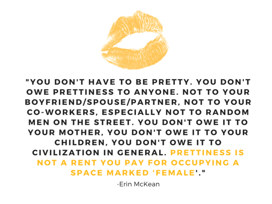 The world would be a lot nicer if people stopped putting “pretty” as an expectation of girls and women. We don’t owe anyone that. Pay attention next time you hear someone on the news talk about a young woman that’s missing. Almost every time they’re called “pretty.” It’s weird. So weird.