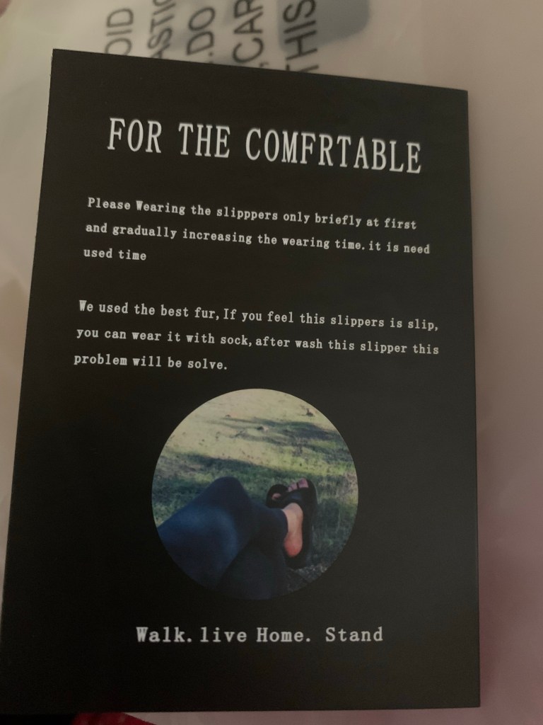 5.189/365: for the comfrtable Kerry Faler Uncategorized July 8, 2022 1 Minute The English major in me died when I read the insert that came with my slippers. Share this: Click to share on X (Opens in new window) X Click to share on Facebook (Opens in new window) Facebook Like Loading... Published by Kerry Faler I collect typewriters in the 21st century. I’m an enigma that way. View all posts by Kerry Faler Published July 8, 2022