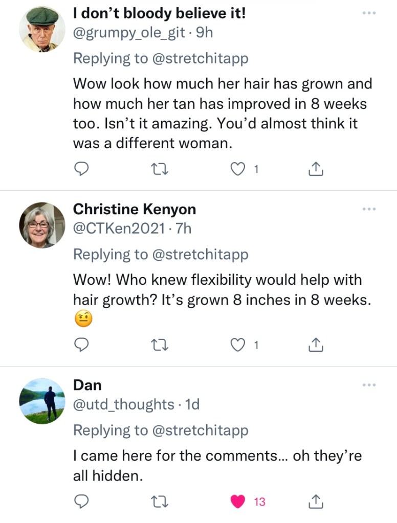 I keep coming across this ad and of course it’s a different woman in the “after” photo, but the photo is ridiculous and the comments are gold.