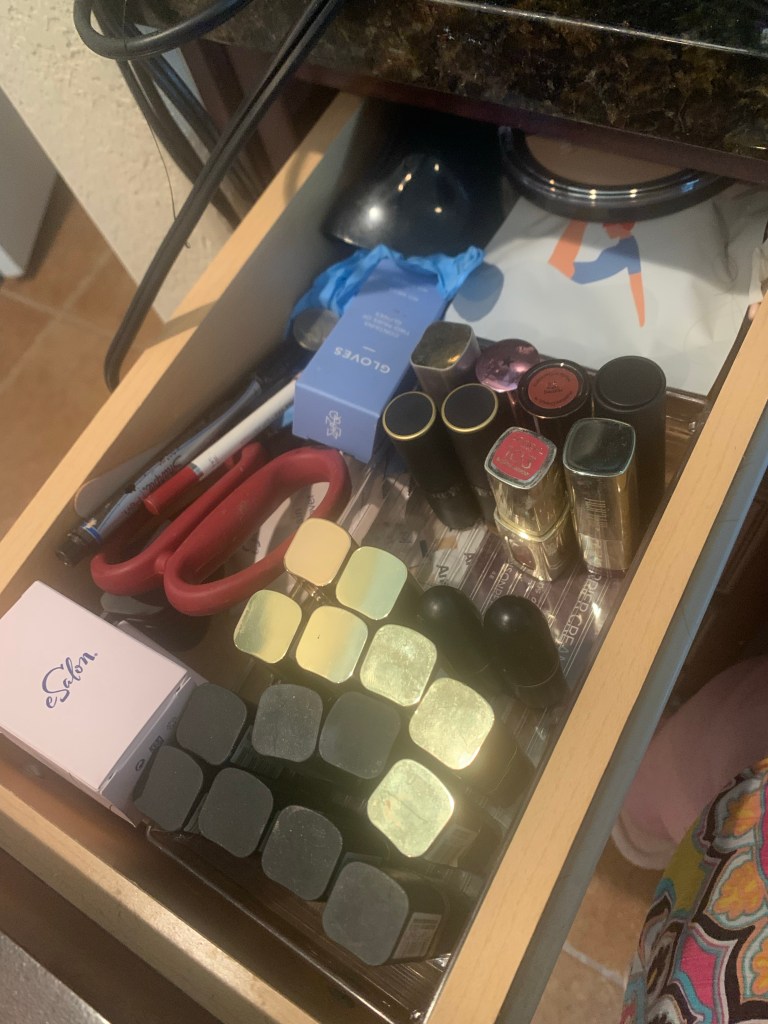 What, you don’t keep your best scissors and hair coloring gloves in your lipstick drawer?