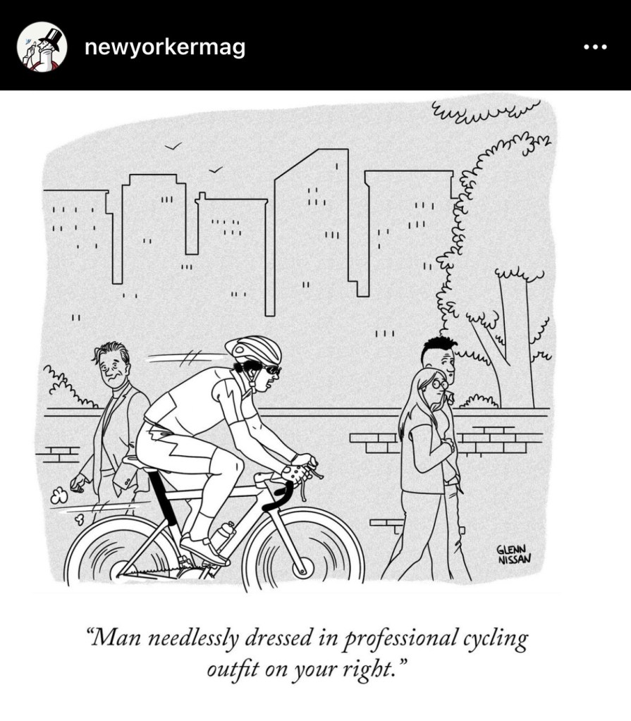 This New Yorker cartoon sums up my neighborhood perfectly. Every day that I leave the house I say “move over, Lance Armstrong” to myself.