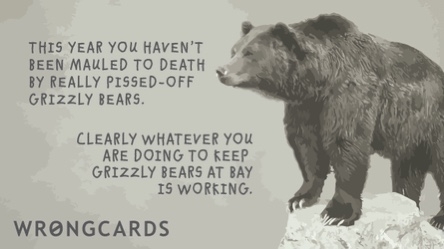 5.294/365: wrong cards week — pissed-off grizzly bears Kerry Faler Uncategorized October 21, 2022 1 Minute I’ve always loved Wrongcards. I’ve posted a few years ago and thought was a good time to post some. Share this: Click to share on X (Opens in new window) X Click to share on Facebook (Opens in new window) Facebook Like Loading... Published by Kerry Faler I collect typewriters in the 21st century. I’m an enigma that way. View all posts by Kerry Faler Published October 21, 2022