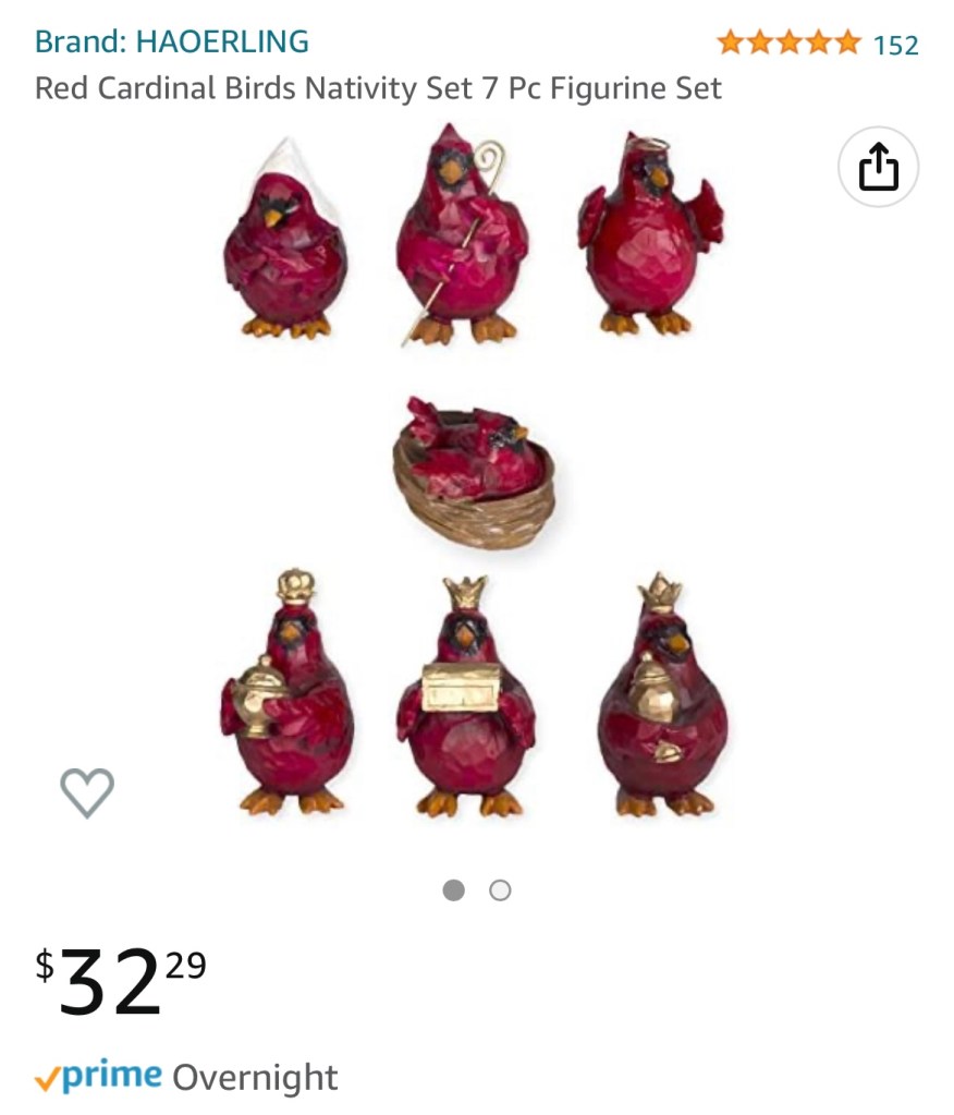 Boy, are you in luck, it’s on sale. It’s almost like they forgot the true meaning of Christmas from the special we see every year. Pretty sure Woodstock wasn’t baby Jesus in that one. Here’s that “Holy Skeletal Night” you wanted. Go ahead and put it up for Día de Muertos and keep it up straight through the Christmas. I don’t have to tell you this is obviously the very “cool girl” glass nativity. You have this if you have all white furniture and a fireplace with no mantel. A Kardashian. Nothing says the the birth of Christ like popping him out of Mary. Joseph and Mary had to leave gnome to be counted for the census, where there was gnome room at the inn. This nativity set it not my thing, but might be perfect in your gnome This is bad. I’m just going to say it, because I keep seeing red cardinals in Christmas cards. Only male cardinals are red. I know it was immaculate conception, but come on.Nothing says “I have money” than some metal pieces and wooden wishbone. This is for a home in danger or extremely accident-prone because it’s indestructible. Except for the wishbone. This is terrible, but not only because it’s rubber duckies, but because there are donkey, cow, and sheep ducks. That doesn’t make sense. For just $2500, you can have this set of random pieces of wood that you can tell your friends is a nativity set. “For the alpaca lover.” Who are these people? I need to know if someone has this. If anyone sees this in someone’s home, send me a pic. This is so spectacular in its ridiculousness. A millennial nativity with hipster wise men on Segways with gifts from Amazon. Sheep in a sweater. Oh my. This is the last nativity set. It’s not terrible, but it is $425 and you can close it when you don’t want the baby Jesus watching you, so that’s nifty. Just as you know God is omniscient like Santa and can see if you or bad or good, so be good for goodness sake. Honorable mention: the diamond Jesus pendant for just $1699. You can go to your megachurch’s Christmas Eve service and show off your love for diamond Jesus. Complete with a diamond tear. Now, that’s what I call Christmas.