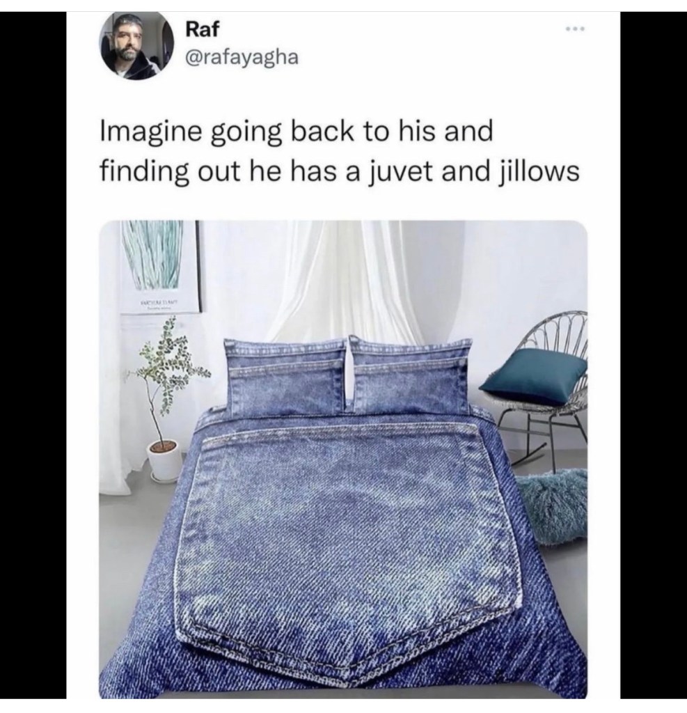 6.6/365: juvet Kerry Faler Uncategorized January 6, 2023 1 Minute I saw this on IG and I laughed so hard that my hurt my neck. So, here’s a laugh to go ok into the weekend. Share this: Click to share on X (Opens in new window) X Click to share on Facebook (Opens in new window) Facebook Like Loading... Published by Kerry Faler I collect typewriters in the 21st century. I’m an enigma that way. View all posts by Kerry Faler Published January 6, 2023