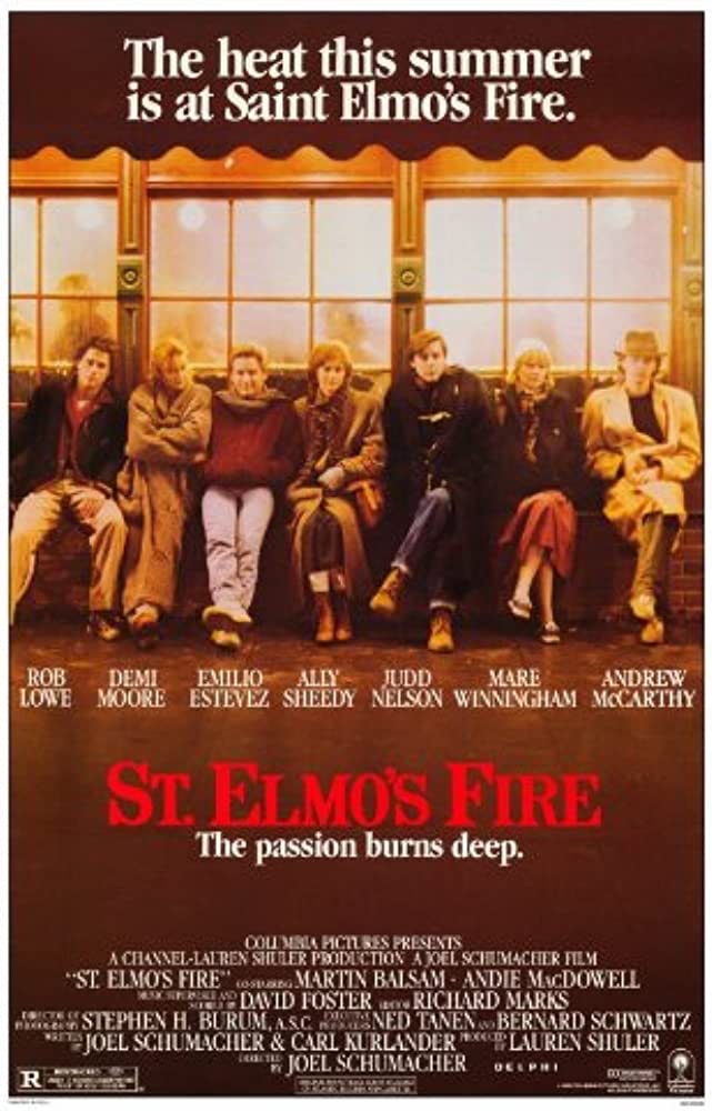 Billy (Lowe): “Jules, y’know, honey… this isn’t real. You know what it is? It’s St. Elmo’s Fire. Electric flashes of light that appear in dark skies out of nowhere. Sailors would guide entire journeys by it, but the joke was on them… there was no fire. There wasn’t even a St. Elmo. They made it up. They made it up because they thought they needed it to keep them going when times got tough, just like you’re making up all of this. We’re all going through this. It’s our time at the edge.”