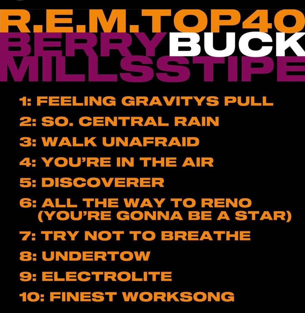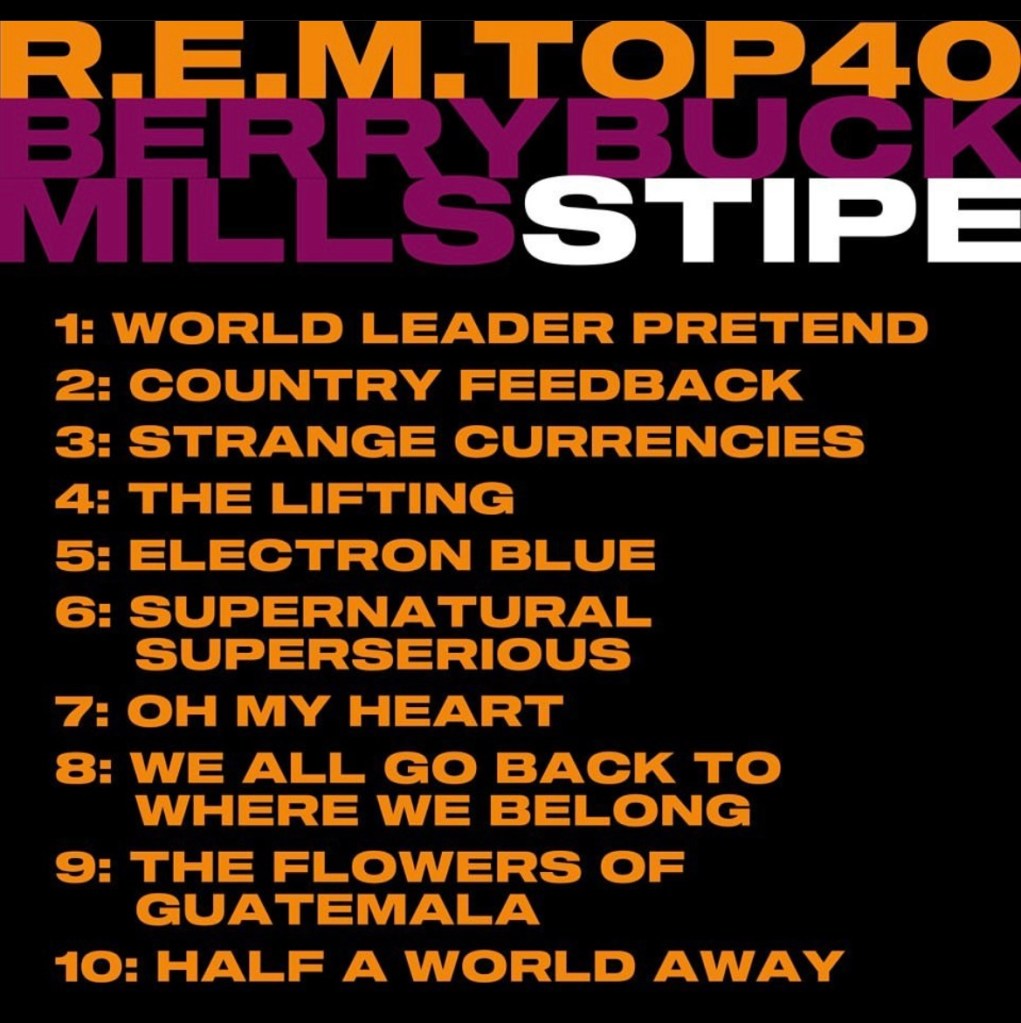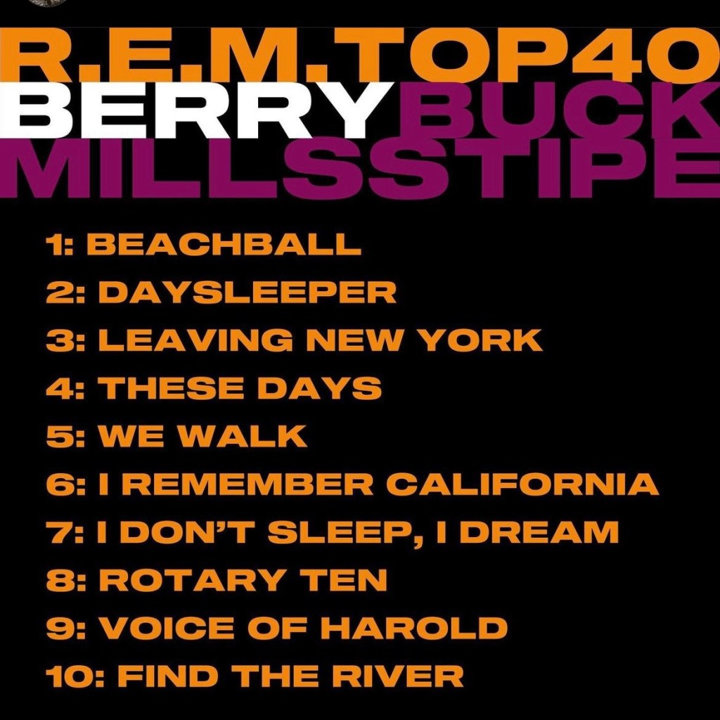 Now, they’ve released a Spotify playlist of 40 songs, with each member’s picks on IG. I assembled the picks below. Bravo to Bill Berry for giving my “Voice of Harold” some love. It’s a favorite. If you don’t know the song or the origination and you’re a big fan of how music gets made, go look it up — you’ll enjoy it.