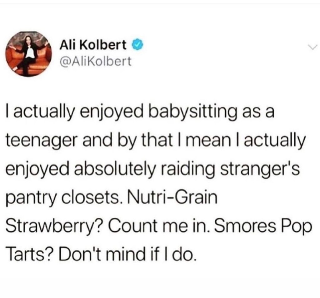 Fact: I babysat at least twice a month in high school and three times a week for one entire summer before my freshman year of college. One family never had food. They only ate out. The only food they ever had was Carnation breakfast bars.
