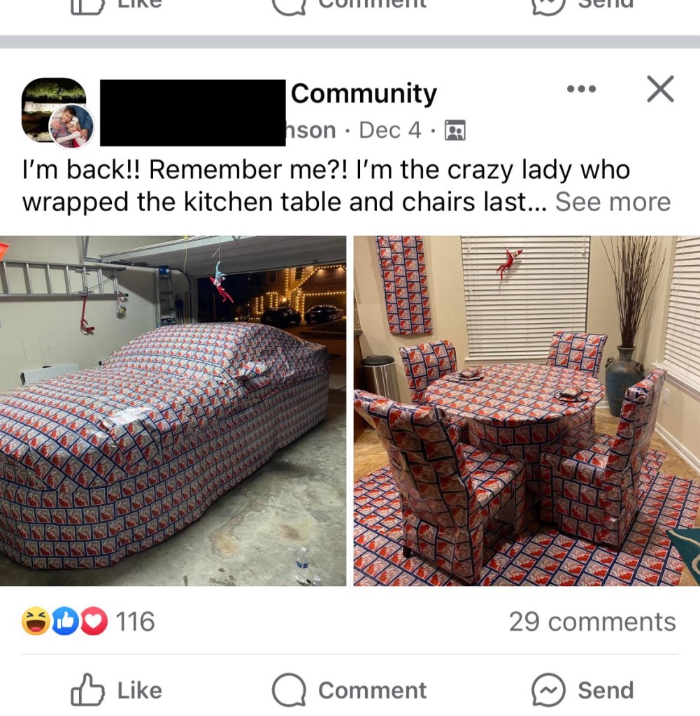 6.347/365: I thought I loved wrapping gifts Kerry Faler Uncategorized December 14, 2023 1 Minute This woman lives in my subdivision. People like this are real and walk among us. Share this: Click to share on X (Opens in new window) X Click to share on Facebook (Opens in new window) Facebook Like Loading... Published by Kerry Faler I collect typewriters in the 21st century. I’m an enigma that way. View all posts by Kerry Faler Published December 14, 2023