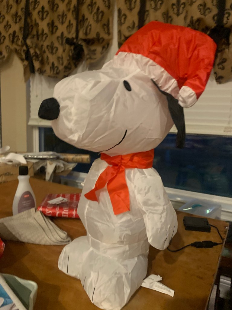 I ordered 10 things from Aldi and they included this inflatable Christmas Snoopy for no reason. What on earth? I guess they’re in the spirit.
