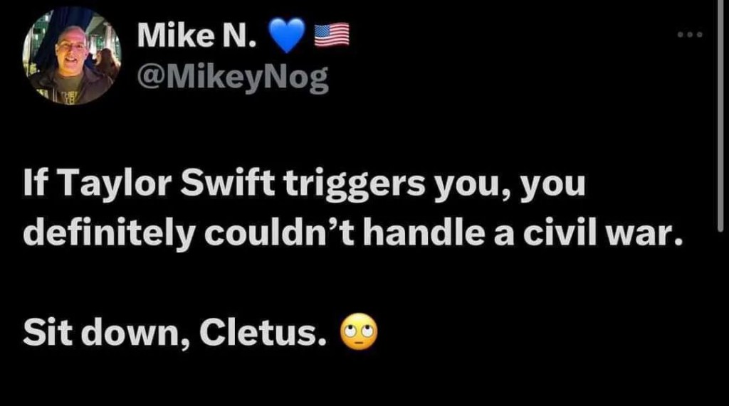 7.32/366: sit down Cletus Kerry Faler Uncategorized February 1, 2024 1 Minute This is accurate for all these idiots. Share this: Click to share on X (Opens in new window) X Click to share on Facebook (Opens in new window) Facebook Like Loading... Published by Kerry Faler I collect typewriters in the 21st century. I’m an enigma that way. View all posts by Kerry Faler Published February 1, 2024