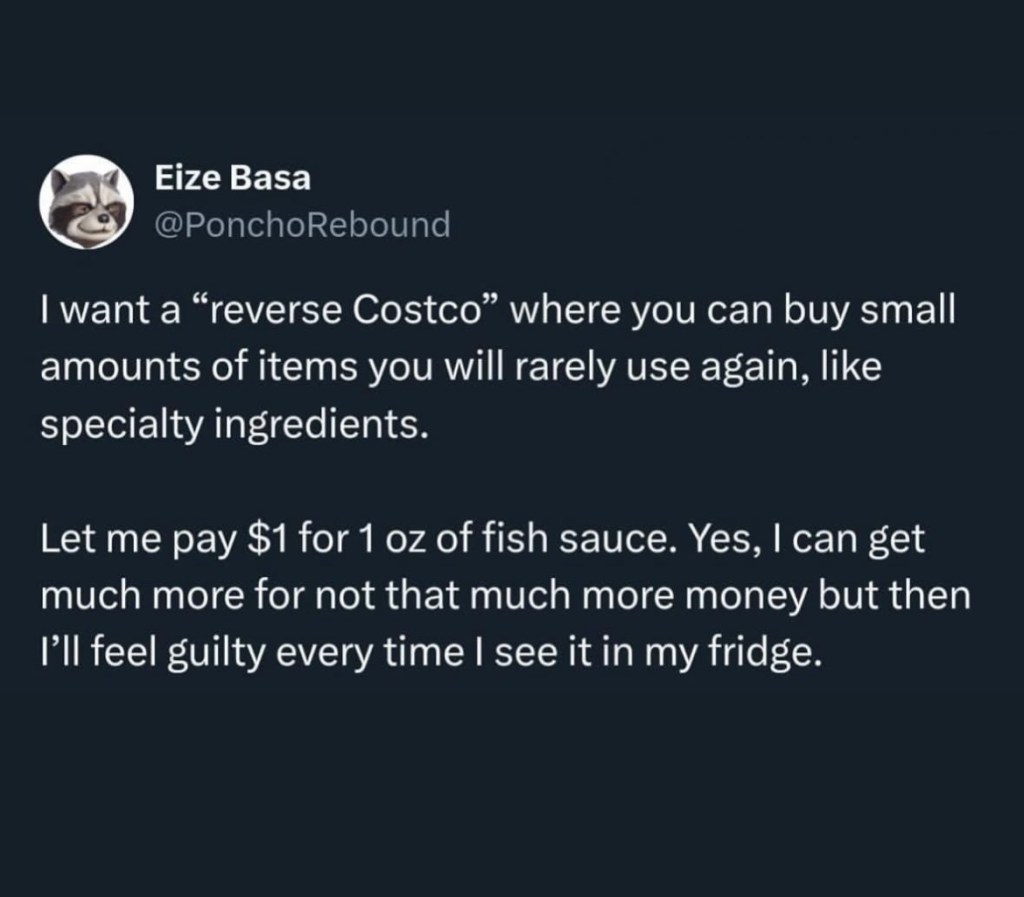 Absolutely. And I’m not talking about a dollar store. I’m talking about $3 worth of saffron because an ounce of saffron costs more than an ounce of gold. Also, wine to cook with. I don’t drink wine, but I occasionally need 3/4 cups of wine. And a handful of fresh green beans. I don’t need a pound.
