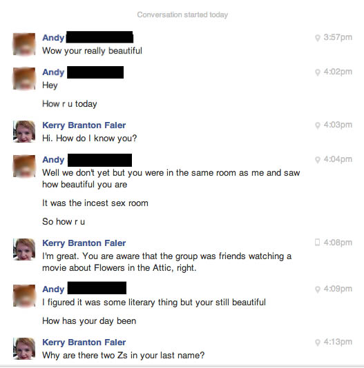 So, some of my friends, as well as I, have a unique sense of humor. Since Facebook comments has replaced getting together to watch television “events,” we create groups or pages so friends can leave comments on threads about the Oscars or TV movies. Last night I was invited to a group to snarkily review “Petals On the Wind,” the sequel to “Flowers in the Attic,” which is a novel most of us read in middle or high school for the scandalous nature of it. A couple of months ago, there was a TV movie made for it and BOY, was it cray cray. In case you aren’t familiar, incest is a topic in the novel and movie (no, they don’t show anything in the movie, we’re not pervs, people).