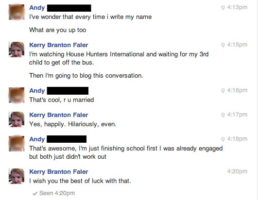 And the only comment I left on the Facebook event page was “my satellite is out, so I’m out.” I didn’t think anything about it for the rest of the night because my husband and I found something on Netflix to watch and I looked up chalk painted cabinets on Pinterest.