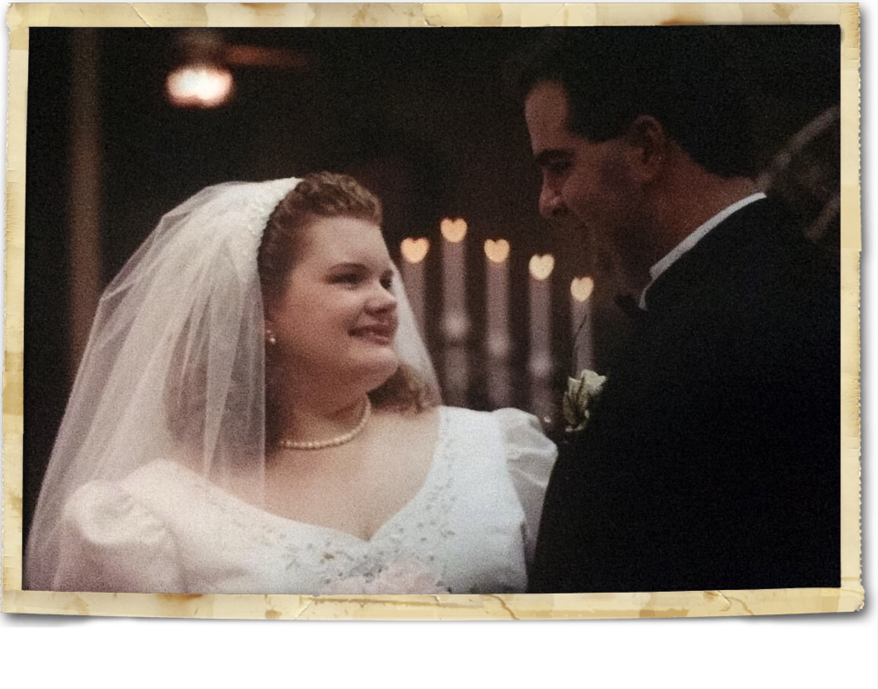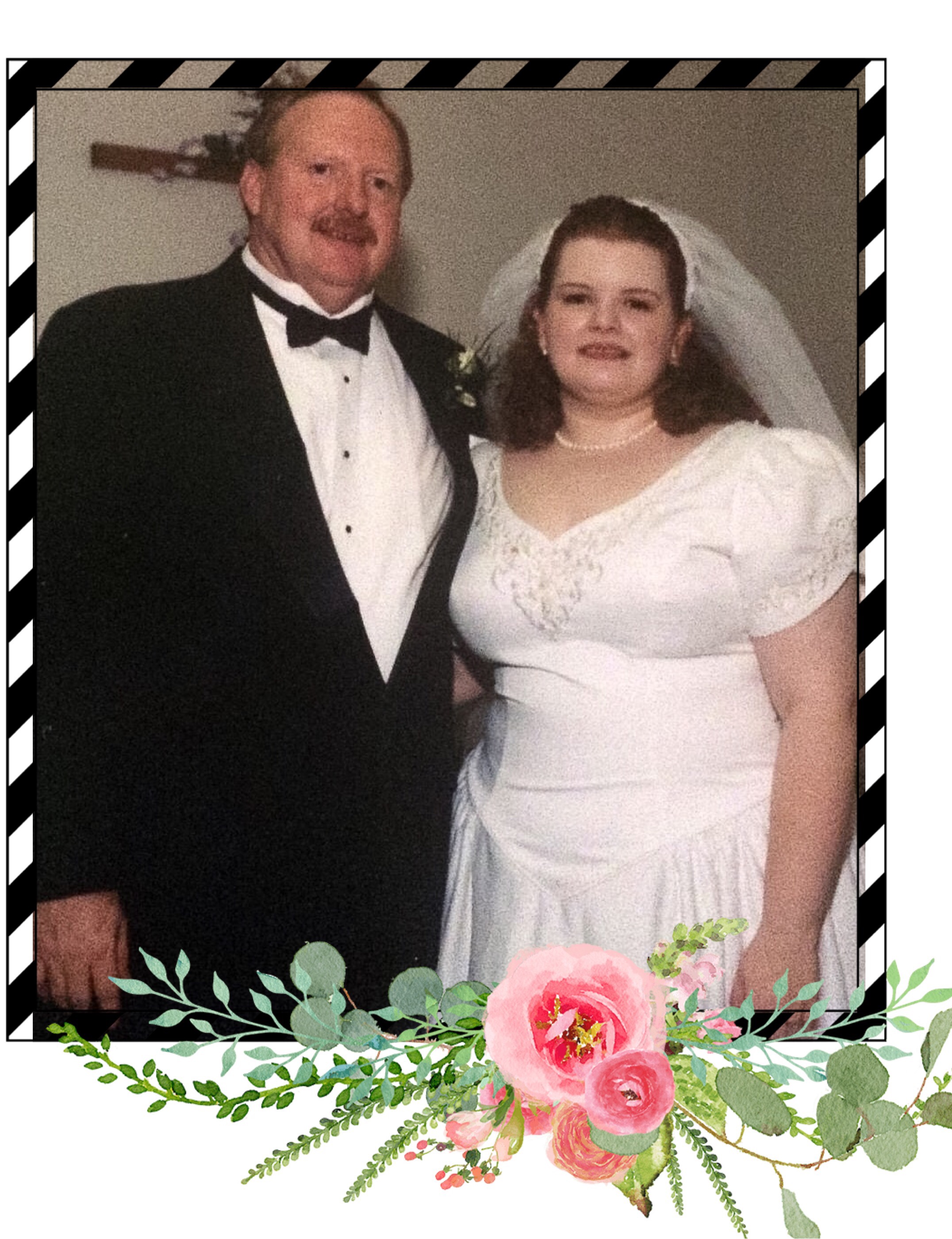 I left Louisiana Tech. I moved back in with my parents in Shreveport. I planned my wedding. It wouldn’t be extravagant. All of the ideas I had were tossed out the window. My dream dress with embroidered daisies was too expensive. My mother and I were told the 4th of July was a “non floral holiday” and florists and bakers took their vacations at that time. Everything was just bizarre. We would be married in my grandparents’ church where I once taught VBS and we would have a church reception. My bouquet and bridesmaids bouquets would be silk. My cake would be made by the bakery at Brookshires. It was actually delicious and the basketweave was exactly what I’d wanted. I adorned it with pink gladiolus. We had a rich chocolate groom’s cake. I loved my bouquet. Barely pink roses, the same color as the bridesmaids’s dresses. My shoes were heeled Mary Janes and the style name was “Kerry,” so that was destined to be. My veil was attached to a sequined and beaded headband that I would wear around the house and to watch Oprah in prior to the wedding. I loved that headband. I wore a blue garter, my grandmother’s earrings, and my dress looked like Ariel’s without the long sleeves. I was practically a Disney Princess.