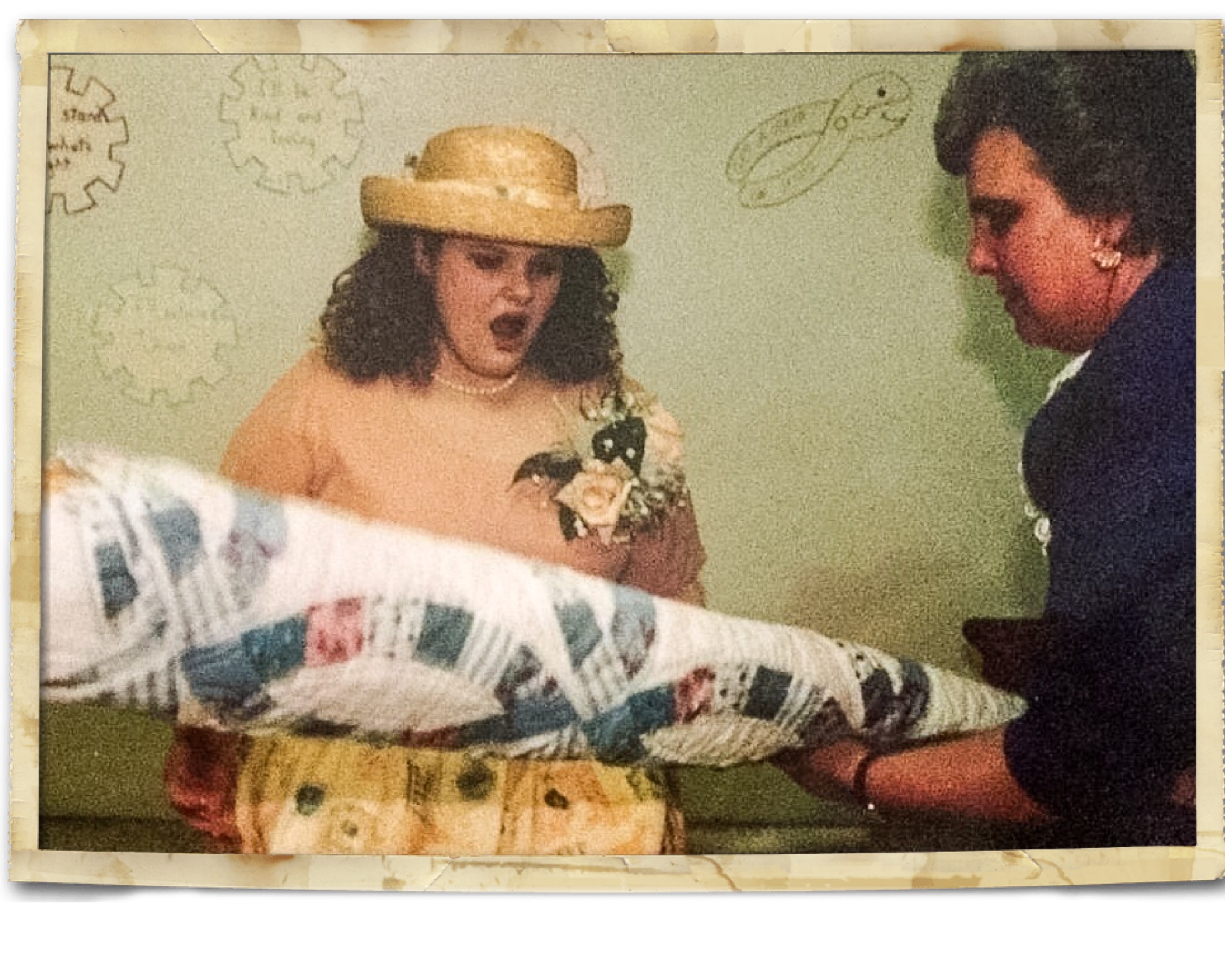 My mom and Jennifer and I went to the room I’d gotten ready in to help me out of my dress and change into my going away outfit. My Aunt Barbara and Uncle Jerry stopped me in the hallway and told me they wanted me to open their gift before I left. We all went into the “bride’s room” that was really a Sunday school room. My Aunt Barbara gave me a quilt with our names and wedding date embroidered. I cried again. It was so thoughtful and I cherished it. We lost her last year. I changed into my going away outfit, a dress Darla’s mother made for me when I spent a long weekend at their house on the lake. It was the summer of “Mmm Bop” (which is presently my ringtone, because you wanted to know that) and Darla and I must have watched the video a thousand times.