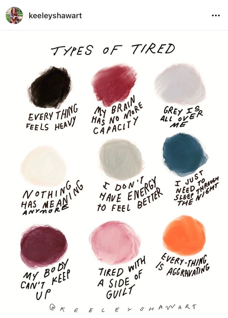 Great emotional graphic from @keeleyshawart. Types of Tired. I feel a lot of these a lot.