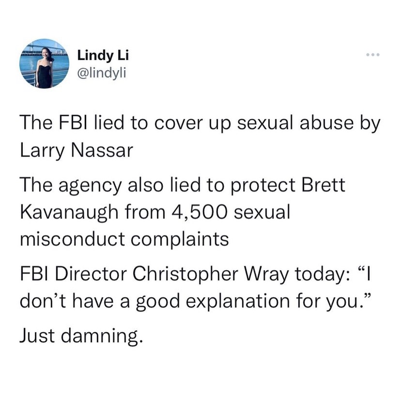 They covered up and lied to protect men in power while girls and women still suffer. And people have the nerve to ask why we don’t report sexual harassment and assault. We’ve known as a community of women that law enforcement won’t do a damn thing to help us, but I never thought we’d see this.