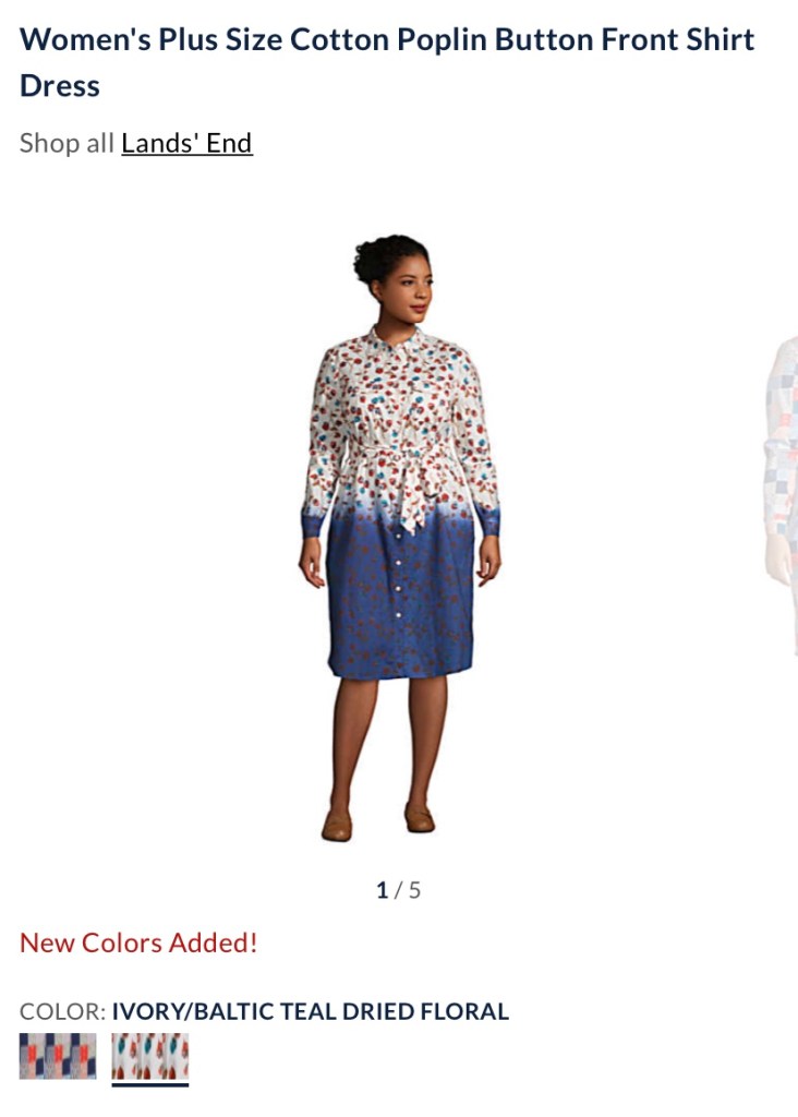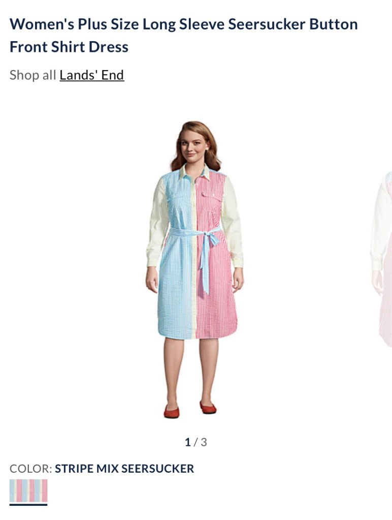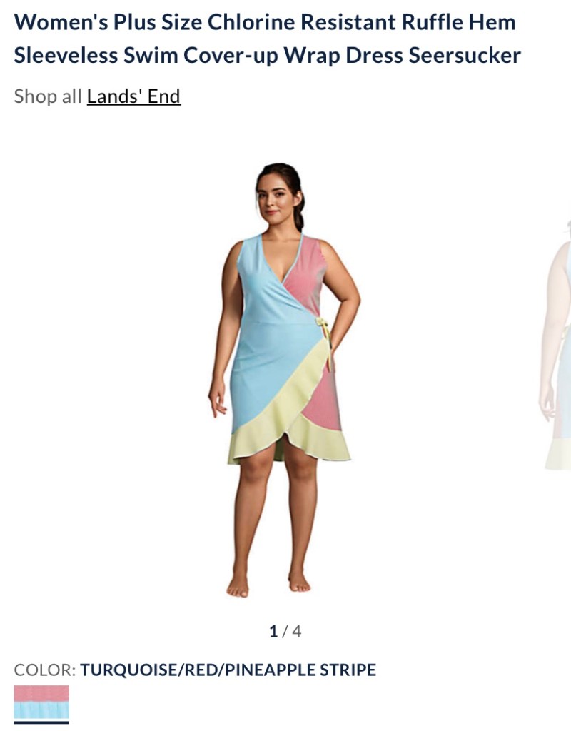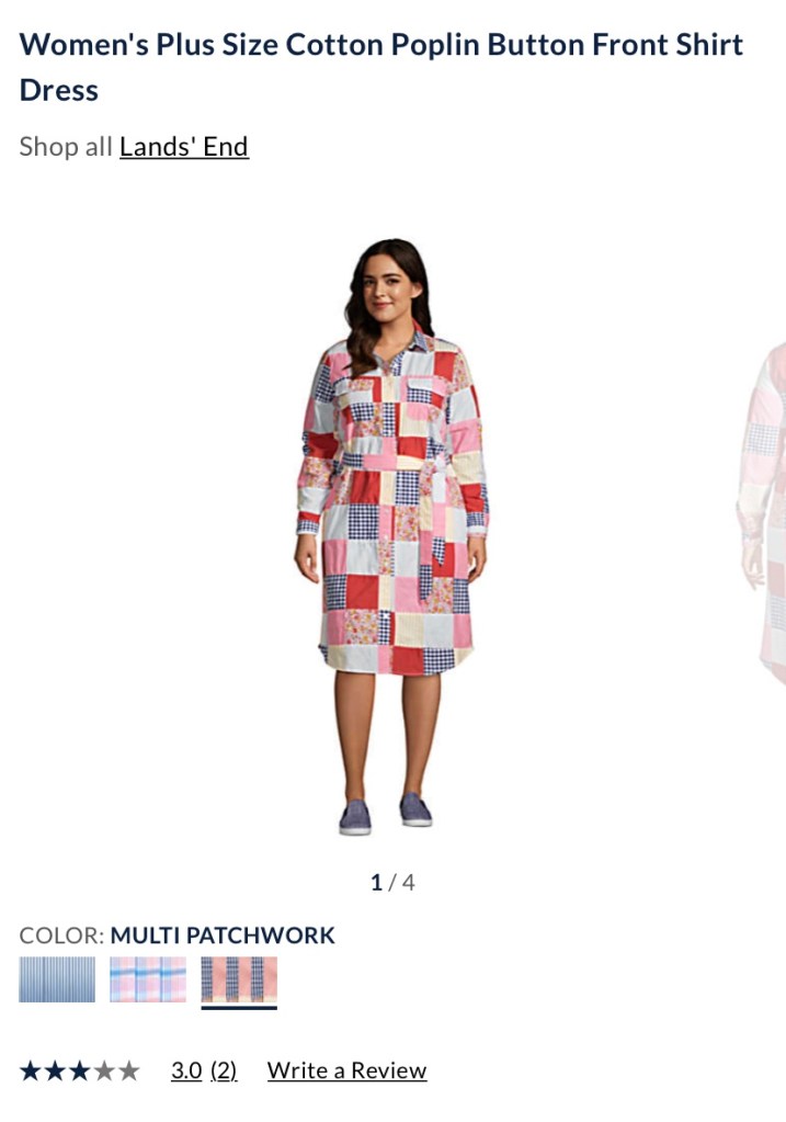 That’s all I’m going to submit you to. I’m sorry, but if I had to see it, so did you because misery loves company. And this was misery. Land’s End, you can do so much better. Talk to an actual plus-sized woman who isn’t color blind and she will show you what we want. Look, I get it, you’re not known for fashion. But here‘s the thing: your demographic skews older and those older women aren’t going to be around forever. If you’re still making this type of style, you’re not going to grab the under 50 crowd. We’re more into fashion than ever and we have money to spend. Stores like Elloqi, Dia, and Asos Curve have figured out the market and are rocking it. You don’t have to rock it, but you can do better if you’re going to offer plus sizes. Otherwise, why have them at all?