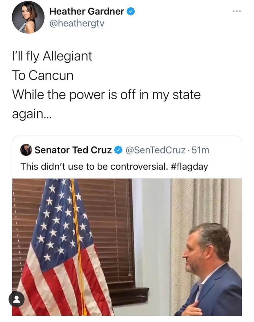 But Cruz isn’t going to talk about ERCOT. He’d rather play pretend in front of a flag.