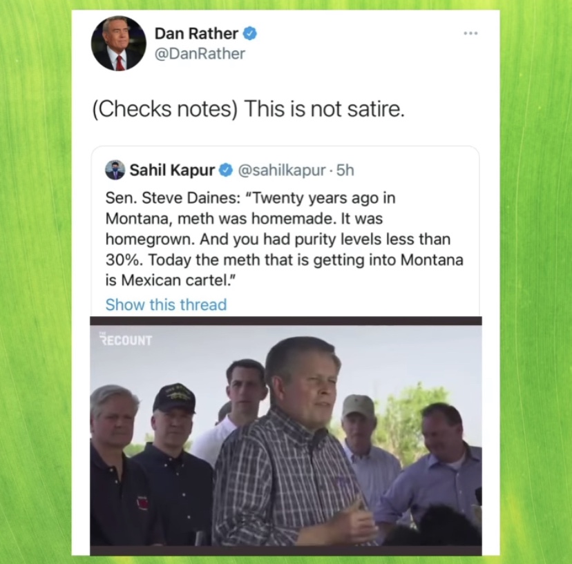 We have a theme! Yesterday I posted about a Montana senator who is mad that a Mexican cartel is hurting the business of meth made in his state.