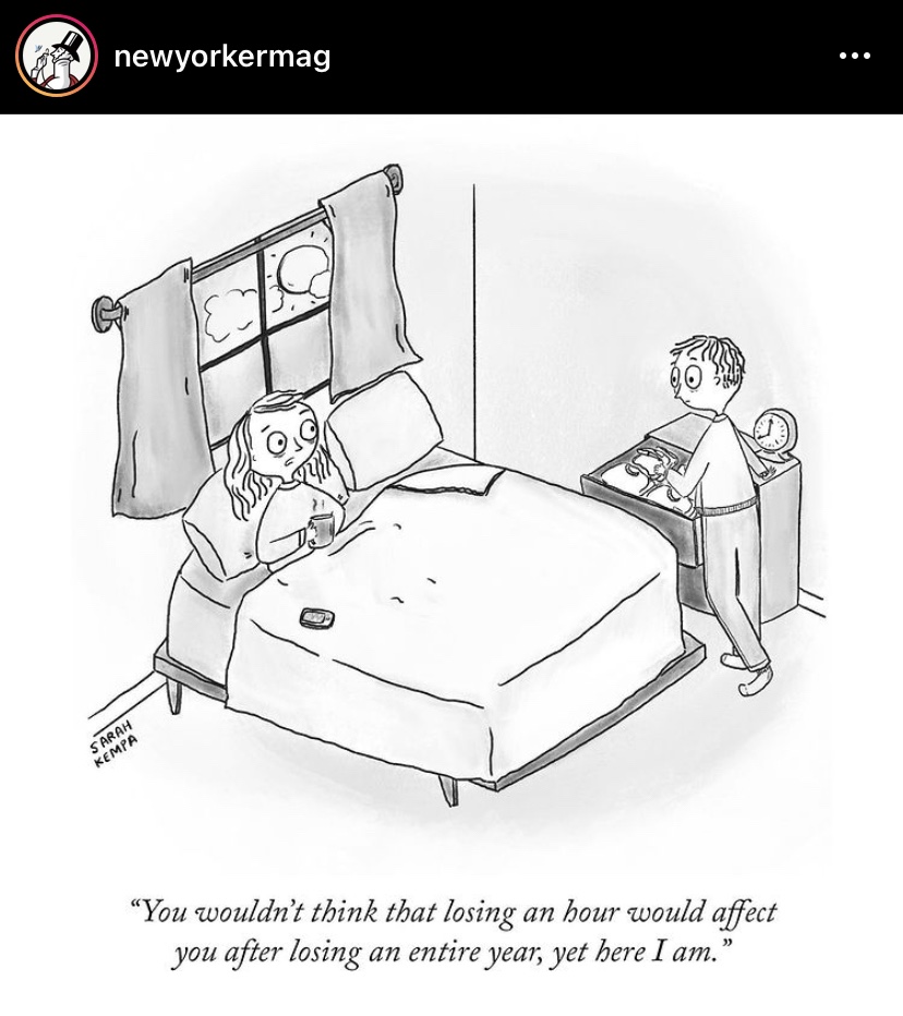 That’s a Counting Crows song, but really — today has me beat. I feel awful. Achey and tired and depressed. I took a two hour nap and I can never nap anymore. Daylight Savings never affected me until about a year ago. It’s not just me. FL Senator Marco Rubio introduced The Sunshine Protection Act, which would move us permanently to year-round daylight saving time, meaning we wouldn’t “fall back” in November.