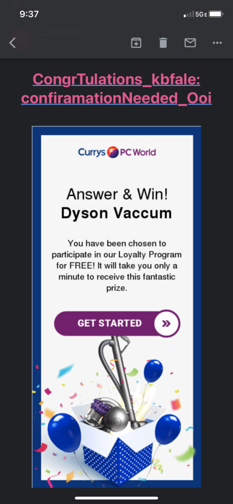 This email did not, in fact, find me well. Maybe it’s that they spelled “vacuum” wrong (or most of the words). Phishy.