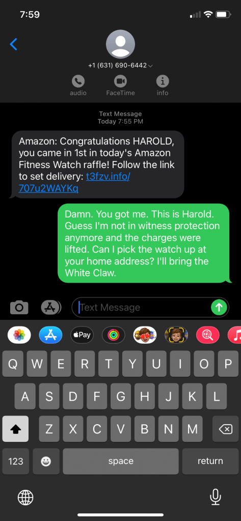 My new favorite thing is replying to scam texts.