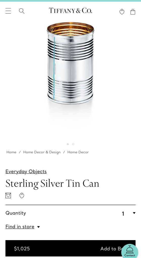 Because Tiffany gonna Tiffany, they released their ”Everyday Objects” line because someone on your list needs a $1025 sterling silver tin can. Like your Pappaw uses to keep his pocket change in.