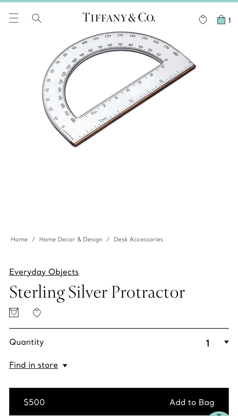 Need a gift for the student in your life? Your 7th grader broke his flimsy plastic protractor and rulers? What a common problem that Tiffany solved for you! For only $1250 you can make sure your kid is set for next semester.