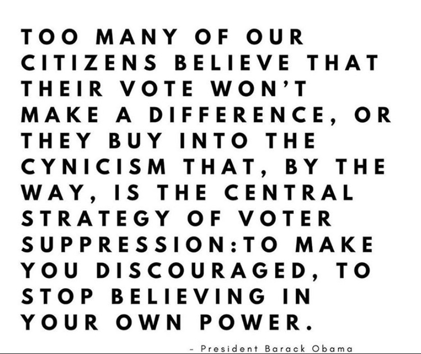 I keep hearing about people who think they vote won’t matter and that people who don’t want to vote should be respected. Voting is your civic duty.