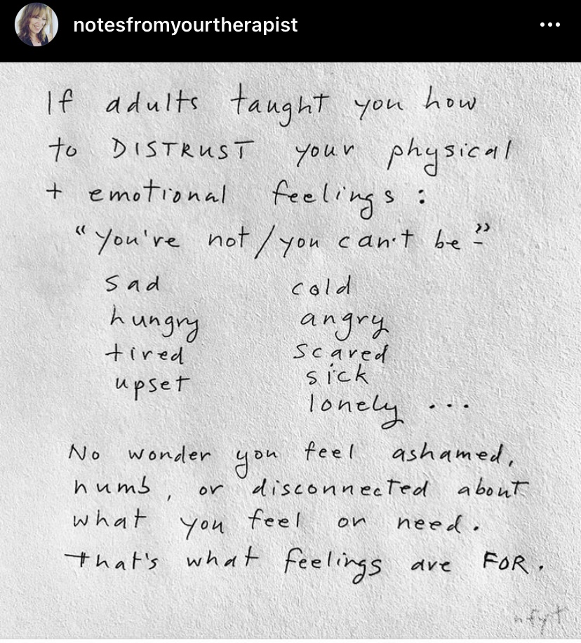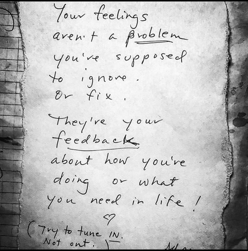 Feelings are feedback, not something to be ”fixed.” This should be common sense and something people should get, but it’s hard for people to see. Don’t ignore your feelings!