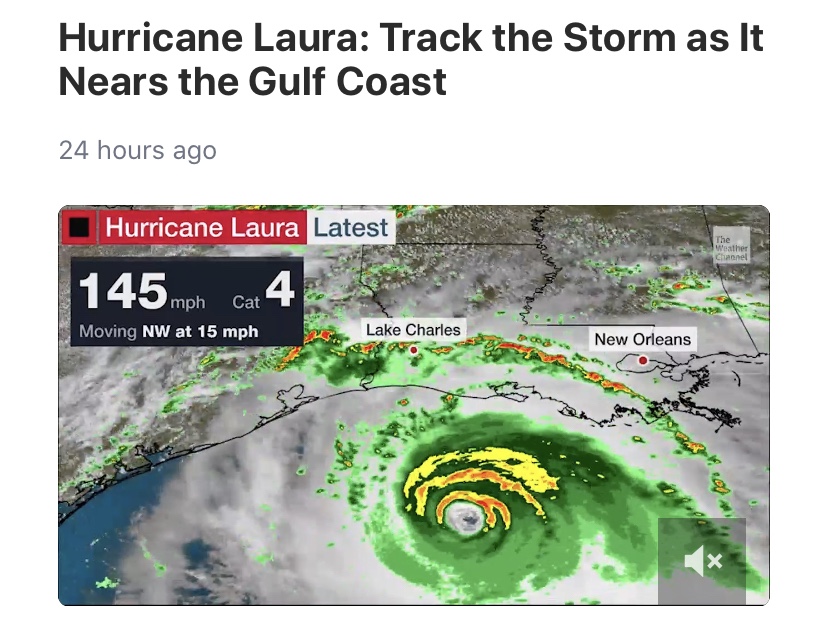 Omg, please swerve, Mr. Tropical Depression (possibly Tropical Storm of Hurrican Marco). We didn’t do anything to you. Just turn around, even stop, collaborate, and listen — chill out there in the Gulf. We don’t need anything else. Seriously, we can only take so many shit storms at a time.