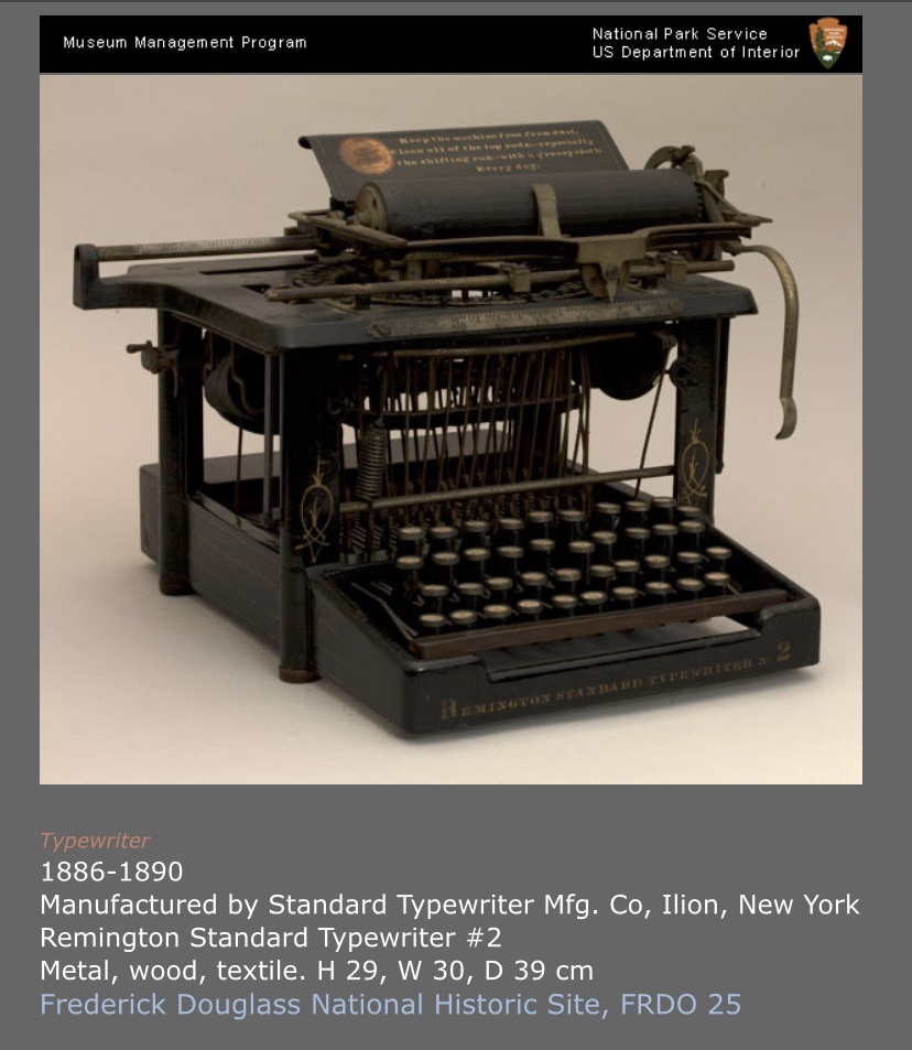 Douglass used a Remington Standard that is housed at tvr Frederick Douglass National Historic Site. How awesome is that?